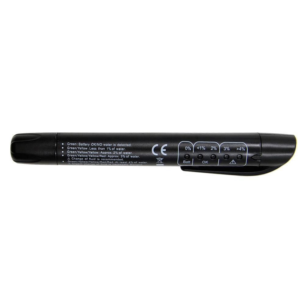 LED light indicators show percentage of water in the brake fluid